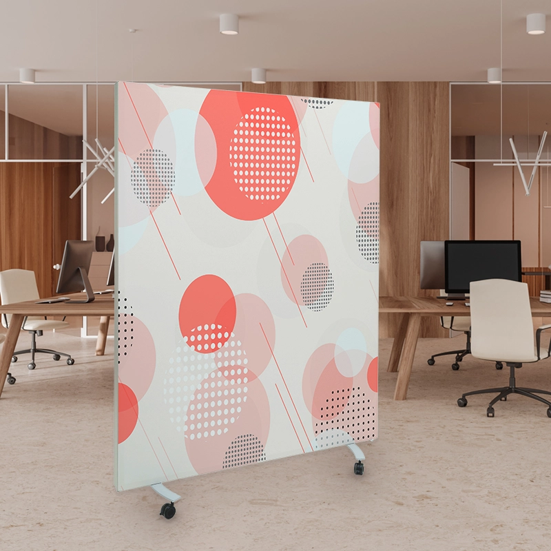Thanks to interchangeable textiles and robust construction, the room divider is suitable for versatile use in interior design. In combination with high-quality textile printing, it offers a durable, modern solution for dynamic room concepts.